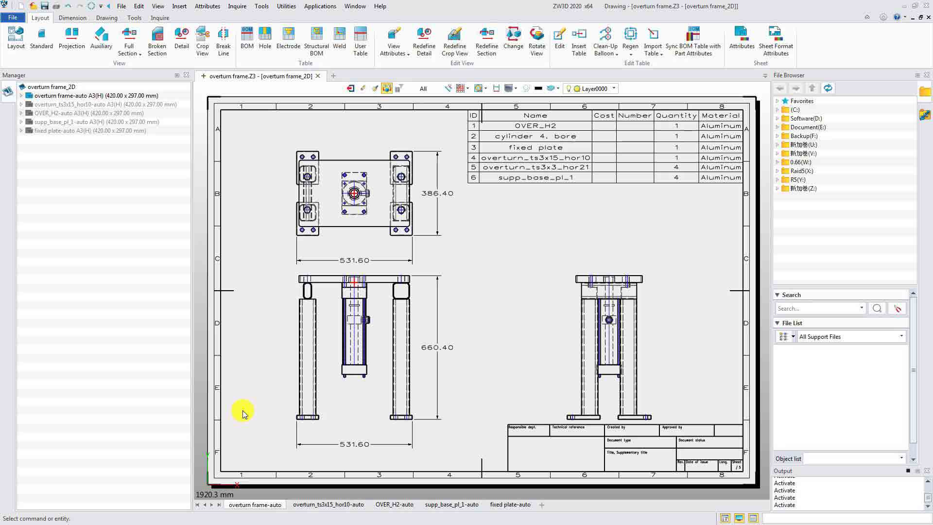 Dibujos 2D para componentes multiples o montajes ahora pueden generarse en lotes. Además, la hoja, la vista, la dimensión y la tabla también se pueden personalizar.
