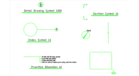 La dimensión incluye la adición de números de cuadrícula, trazador de líneas de puerta / ventana en lote. Esto también permite agregar símbolos como elevación, símbolo de índice, símbolo de dibujo detallado y brújula.